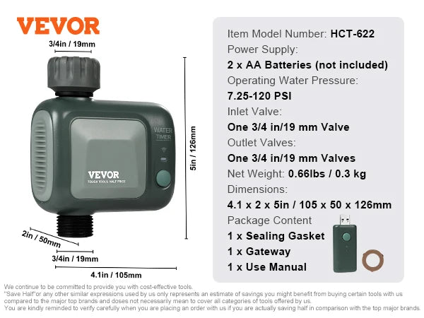 - Compact Design: HCT-622 measures approximately 4.1 x 2 x 5 in and weighs around 0.66 lb, while HCT-626 measures about 4.8 x 2.2 x 5 in and weighs about 0.95 lb, making this timer easy to fit in any outdoor setup.